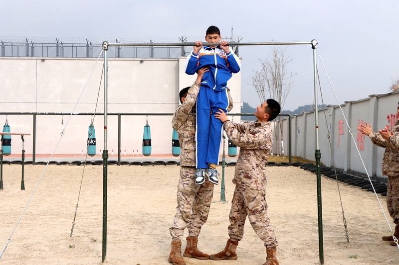 “你们很棒,很帅,加油!”当天,官兵们用手语热情欢迎两个孩子的到来,并带领孩子们参观枪械等各类装备,耐心比划讲解用途和性能,让他们近距离触摸感受。随后,手把手教孩子们格斗基础动作,展示刚劲有力的军体拳,带领他们体验各项训练,并全程细心守护。